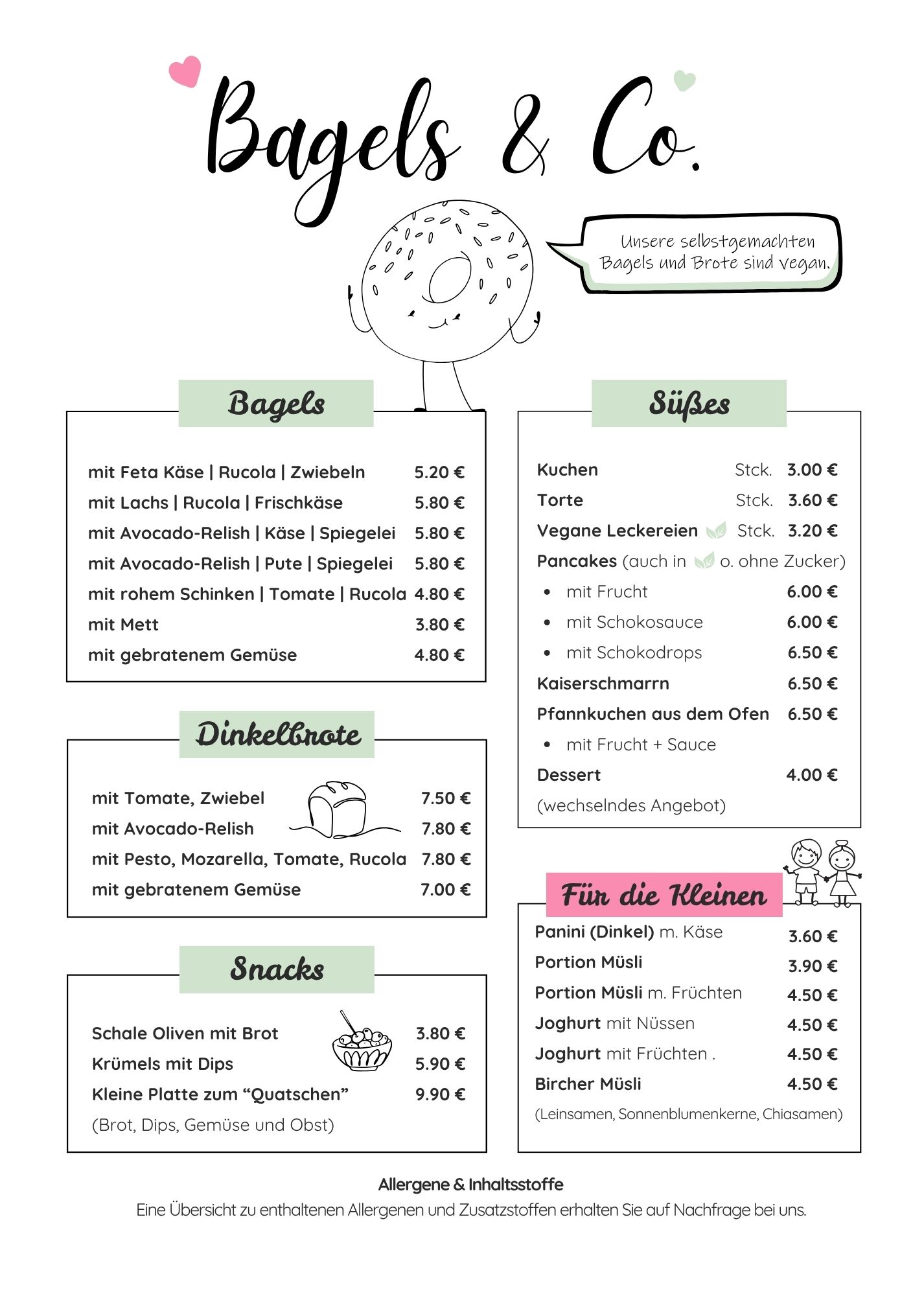 2 x Bagels + 1 Scheibe Brot 3 x Aufstrich 1 x Süßer Aufstrich 1 x Kaffee