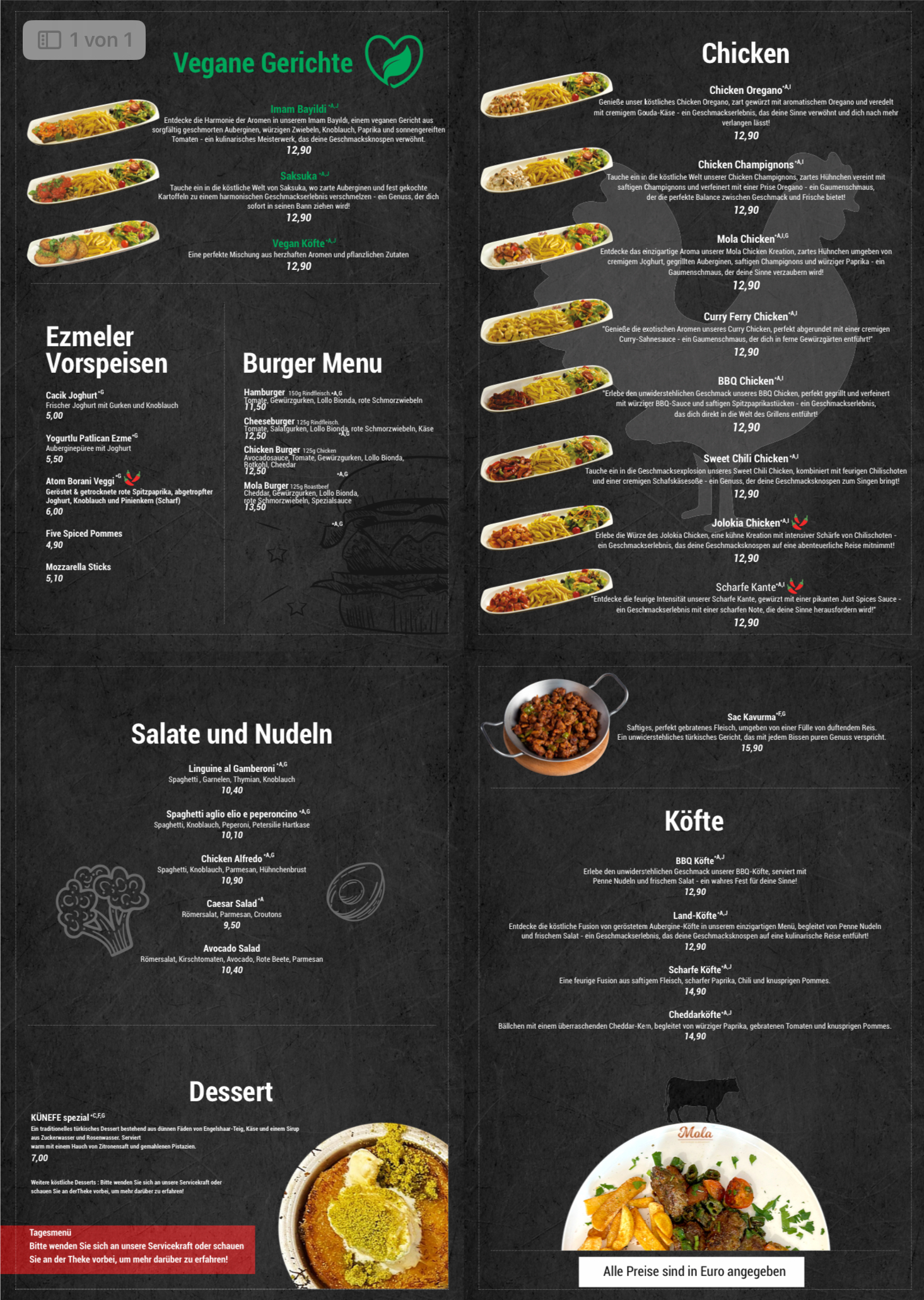 Menu from Mola | Restaurant & Breakfast