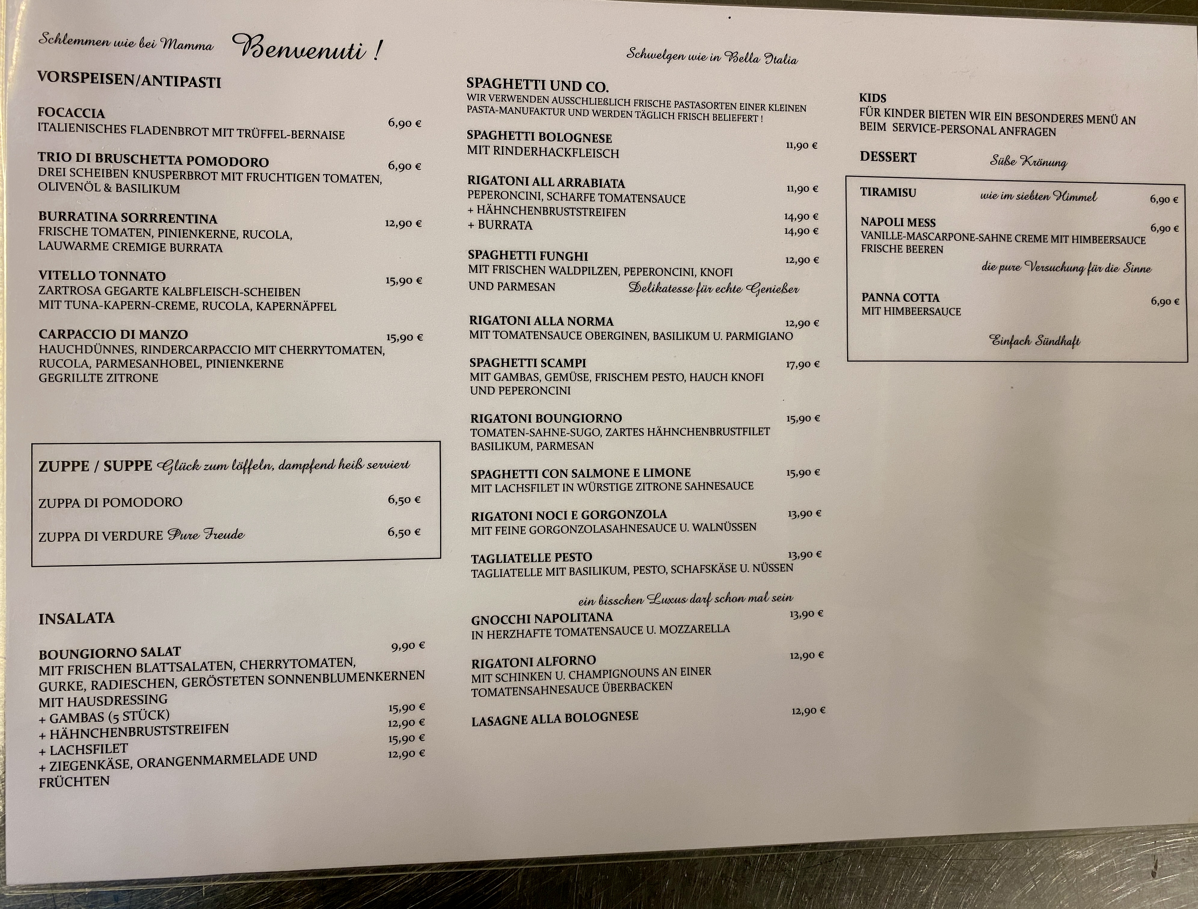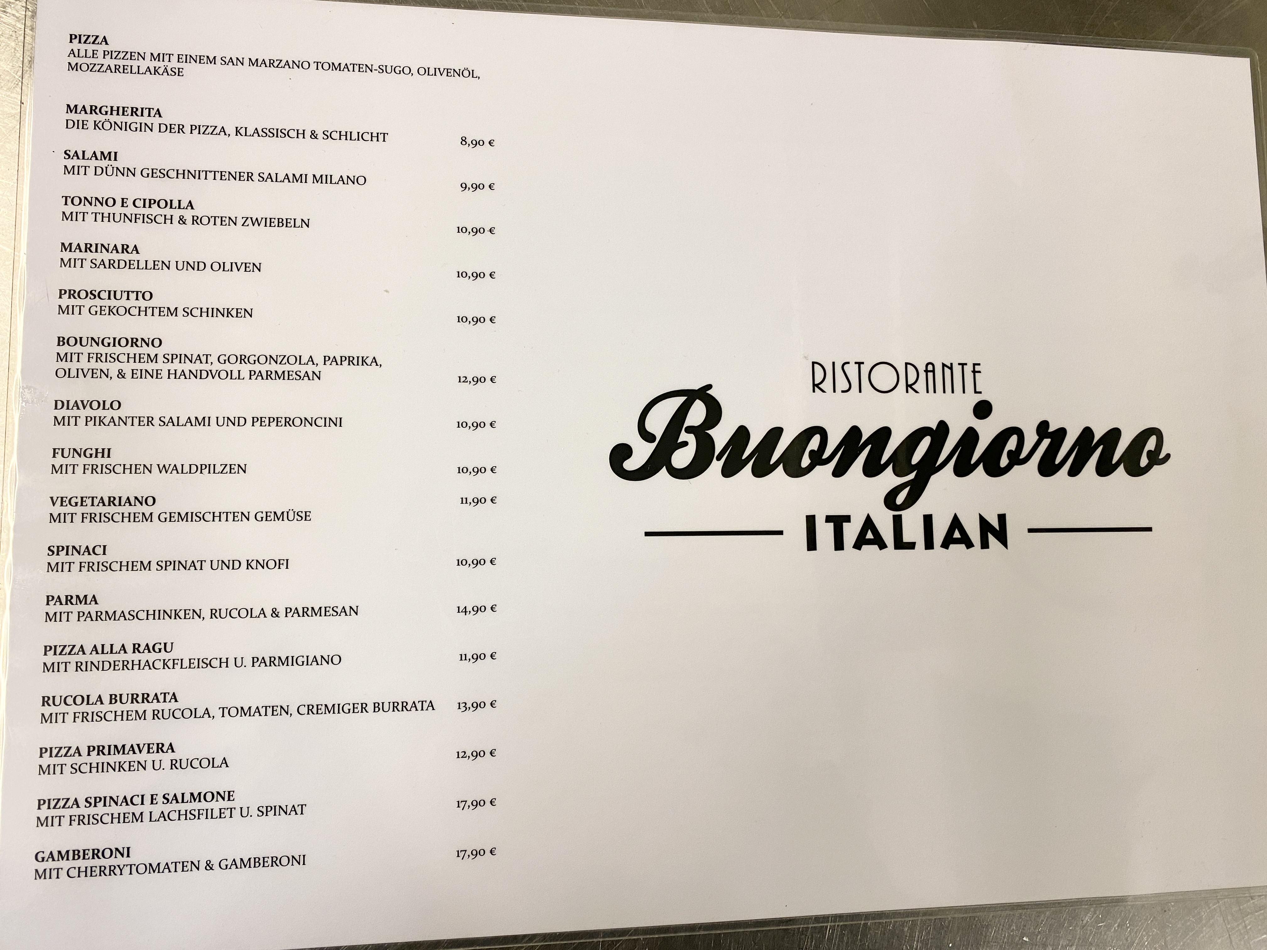 Menu from Ristorante Buongiorno