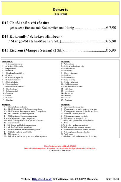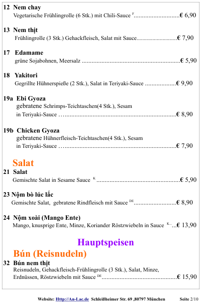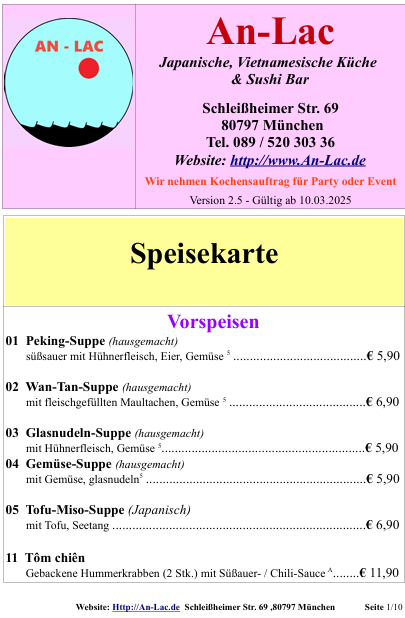 Speisekarte von AN-LAC Restaurant - Japanese, Vietnamese cuisine & Sushi Bar